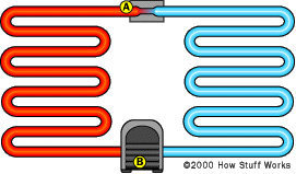 比方說,將一個無限大的空間A,分隔成相互jue緣沒有熱傳導(dǎo)的空間A和B。之后,進行熱量的傳導(dǎo)制冷。采用制冷劑,是A空間的氣體。